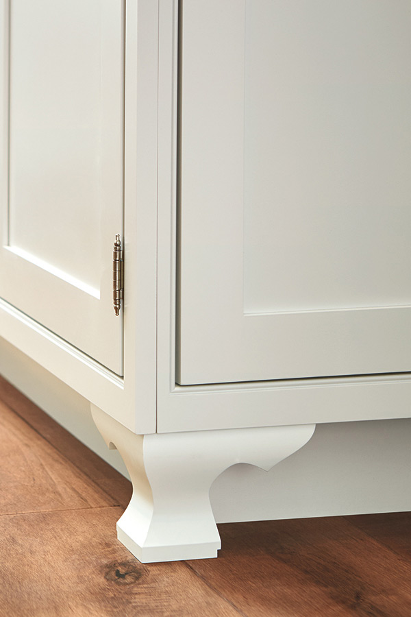 The interesting lines of the Hampton Pedestal Foot create an area of focus and provide cabinets a furniture-like look.