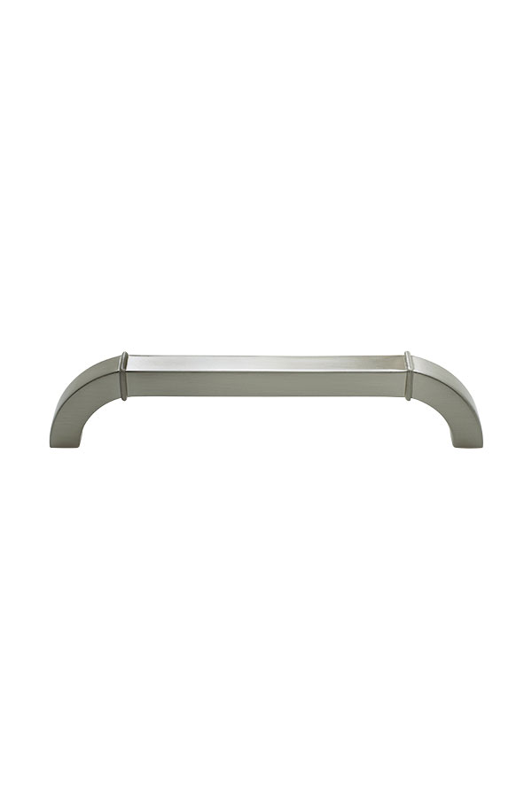 This decorative satin nickel cabinet pull offers the perfect finishing touch.