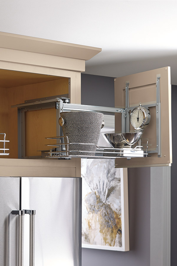 Put away the step stool. The Wall Refrigerator Pull-out cabinet features heavy-duty, smooth-gliding hardware to make it easier to get at those hard-to-access contents above the refrigerator.