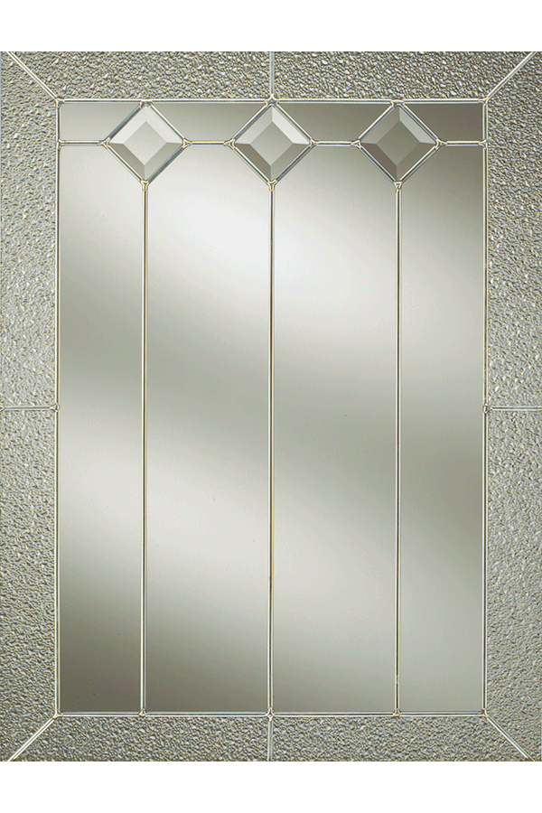 The brilliant combination of pebbled glass, silver leading, clear and beveled glass give the Delray door a lean, clean and elegant look.